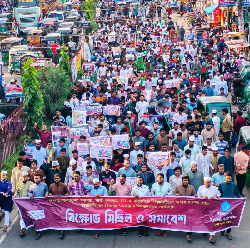 বাংলাদেশ ইসলামী ছাত্রশিবির নোয়াখালী শহর শাখার উদ্যোগে ছাত্রদলের অব্যাহত মিথ্যাচার,ডাকসু বানচলের ষড়যন্ত্র, বাকৃবি ও নারী শিক্ষার্থীদের হেনস্তার প্রতিবাদে বিক্ষোভ মিছিল ও সমাবেশ এর আয়োজন করে বাংলাদেশ ইসলামী ছাত্রশিবির নোয়াখালী শহর শাখা।