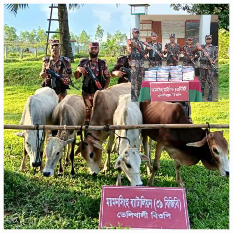 শেরপুরের ঝিনাইগাতী উপজেলা ও ময়মনসিংহ জেলার হালুয়াঘাট সীমান্তে ময়মনসিংহ ব্যাটালিয়ন (৩৯ বিজিবি) এর বিশেষ অভিযানে বিপুল পরিমাণ ভারতীয় চোরাচালানী মালামাল, মদ ও গরু আটক করা হয়েছে। বুধবার (৩সেপ্টেম্বর) পৃথক অভিযানে এসব মালামাল জব্দ করা হয়।